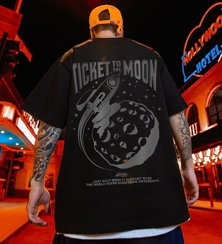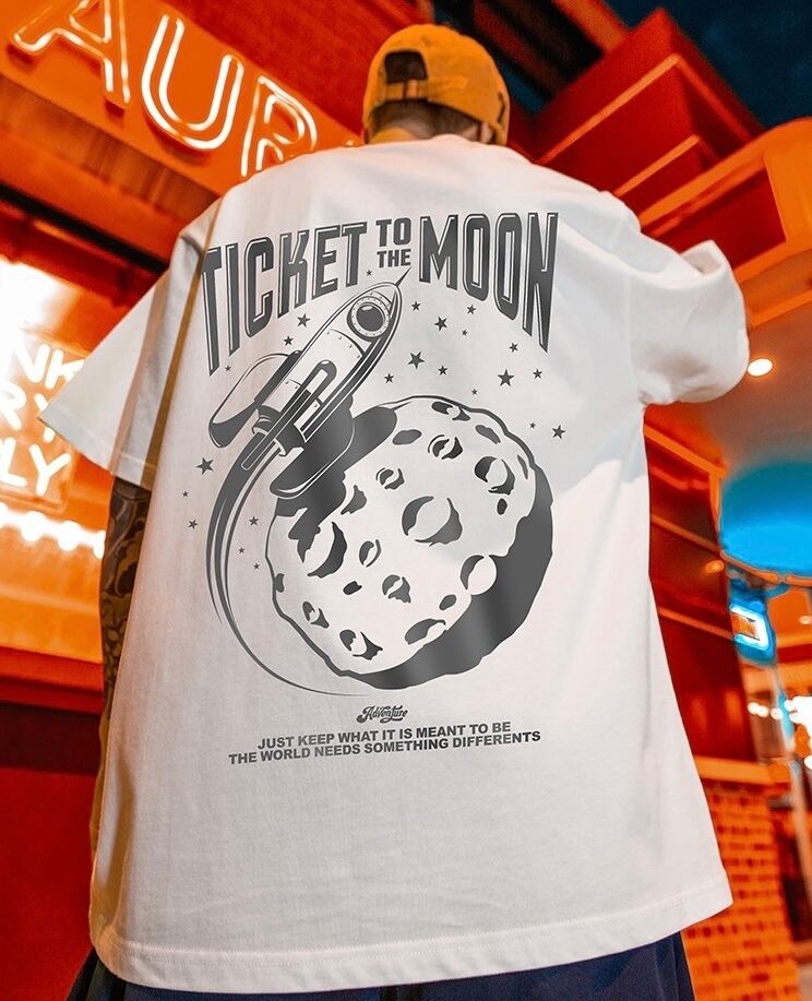Street tide brand letter printing short-sleeved TICKET to the MOON